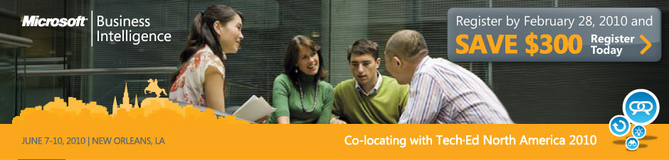 New Orleans-ban kerül megrendezésre az évesnek tervezett, majd kétéves esedékességűvé vált Microsoft BI konferencia. A június 7-10-ig tartó rendezvényt idén összevonják a Tech Ed-del. Agenda még nincs, regisztrálni már lehet.